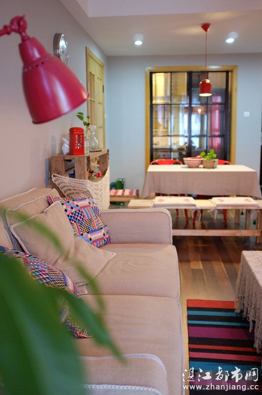 客厅,一看就知道新家很独特的风格,色彩很丰富,但是看着很搭,特别是七彩的窗帘。