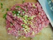 碎荠菜和香菇与肉糜混合加入所有的调料混合搅拌均匀。