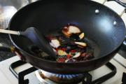 倒入小半锅水,加入两大勺剁椒酱,和匀,盖上锅盖闷煮(注意不用加盐,因为熏肉和香干都是咸的)。