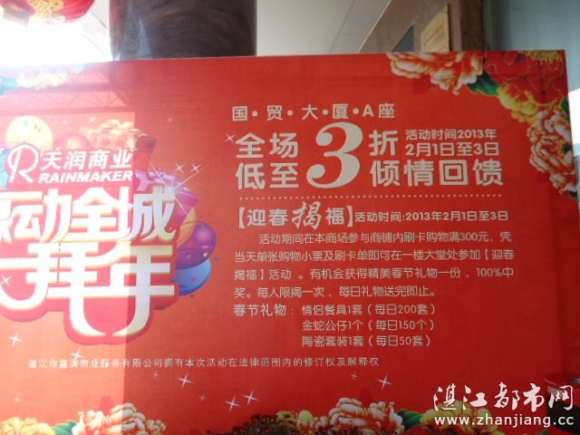 再来就是国贸A,B座和城市广场的促销活动了,为了迎战王府井百货,广百这些国内著名的百货商城的冲击,国贸这个本土的百货巨头都出尽办法,大打促销返利大活动!誓于港城市民过肥年!国贸A,B座,城市广场的促销基本一样,不过所送的礼品就不一样了!