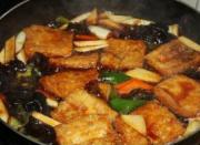 加水、生抽、老抽、盐、豆瓣酱、煎好的豆腐,加盖煮开。