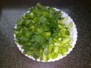 再下入蒜绿煸炒,加适量的盐和鸡精翻炒均匀即可。