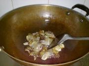 一开始中火煸炒腊肉,后面大火快炒大蒜。