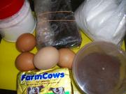 原料: 鸡蛋 4粒 细纱糖 70克 普通面粉 70克 可可粉 15克 牛油 50克 (溶化) 巧克力豆 适量 陷料: 香橙糖霜 200克 装饰: 巧克力 200克 白油 1小匙 鲜奶油 200克 (打法备用)