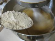 面粉 3杯 盐 1茶匙 苏打粉 1茶匙 泡打粉 1茶匙 肉桂粉 3茶匙 鸡蛋 3个 菜油 1杯 白糖 2又1/4 杯 香草精 3 茶匙 西葫芦瓜丝 2 杯(用擦丝的东西,或切成细丝) 切碎的核桃仁 1 杯