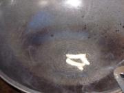 鸡蛋打在碗中,倒入香油,打匀备用。