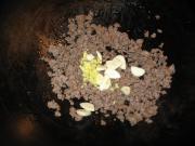 牛肉末先在锅里炒干水分,(不用放油,炒一炒,水分干了后油就出来了)然后再加入料酒,姜粒,蒜片,一同炒香,放酱油,一点儿老抽上色。如果有郫县豆瓣和四川宜宾的芽菜,锅里放一点儿油把郫县豆瓣炒香,再加入炒好的肉末和芽菜一同炒好备用。(因为郫县豆瓣咸,酱油和老抽就要少放。)