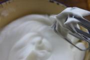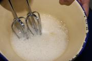 开始打蛋清了,分3次加入糖,前面有详细的打法,可参考。加几滴白醋