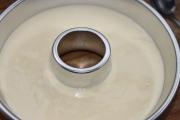 搅拌好的面糊倒入模内,提起模子在案板上震几下,震出中间的大气泡,放入烤箱。