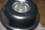 170度45分钟,上下火,中下层,取出倒扣。中间的烟囱刚好可以放在一个纸杯上,嘻嘻。