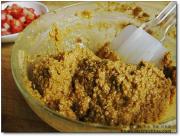 把八步骤的材料均匀涂在四步骤上。放入烤箱。