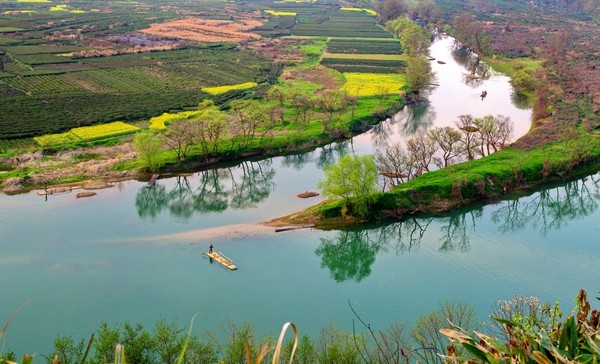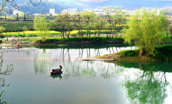 月亮湾在婺源的东线景区,县城到李坑、江铃等景区的路边,离县城不到5公里。月亮湾其实就是一个弯月型的小岛、一湾碧绿的春水、遍野盛开的菜花、一二江南小舟,犹如一个清新美丽温
