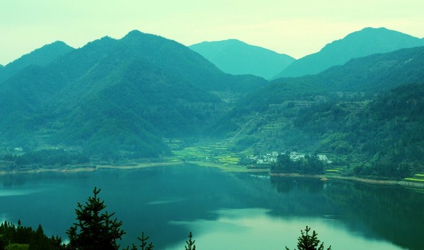 所谓高山平湖就是位于婺源段莘乡高山之巅的段莘水库,原本是段莘河的源头,自截流蓄水建成梯级电站后,这里方圆六千亩的水面变成了烟波浩淼的湖泊。成了烟波浩淼的湖泊。泛舟湖上,