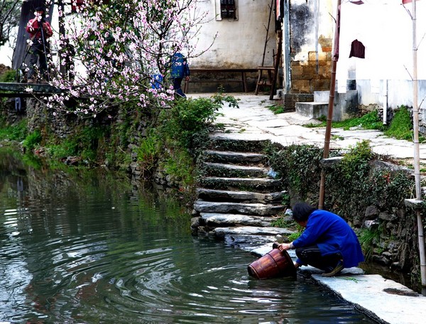 在来婺源前,最早的行程规划第一站就是月亮湾,后来从网上查到,今年由于上游修堤坝,被截了水,没水的月亮湾就不是月亮湾了,也就失去了他的美丽。网上都说可能还要一段时间才能放