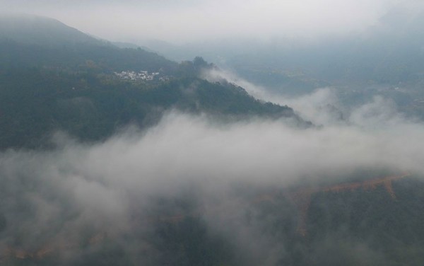 等我们到了地方,天阴的越发重了,看来拍摄日出平湖是没有希望了,只好隔着迷雾拍了几张朦朦胧胧的高山平湖,无奈返回庆元。