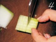 拿一块冬瓜,先竖着切深0.5cm间隔也是0.5CM的花刀(如图)