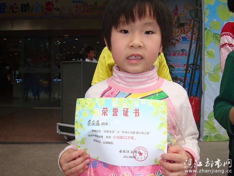“铛”,一声锣响,为湛江晨光小学的患上右胫前段恶性肿瘤的梁小惠小朋友募捐的赤坎区“低碳生活”之“环保小当家,爱心助义卖”公益活动开幕了。结束了连绵不断的阴雨天气,2013年4月13日-14日,迎来了适合户外活动的好天气。
