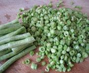 待肉粒炒至变色发白炒散时倒入豆角、加入盐、味精、料酒、白糖、翻炒至豆角成熟既可以了。