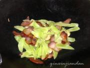 下莴笋炒至断青,下料酒、盐、适量的生抽调味。