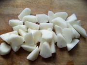 山药削皮切成滚刀。