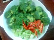 芥兰、香芹、辣椒切好