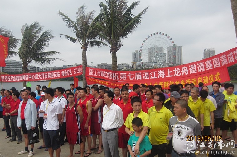 为深入贯彻《全民健身条例》(2011-2015),促进我市群众体育事业的快速发展,推动全民健身;为了进一步弘扬中华传统文化及体验龙舟文化魅力;由市体育局、市电视台、市龙舟协会及绮豪制服联合举办的2013“绮豪杯”龙舟邀请赛年暨2013“湛江海上龙舟大本营”群体龙舟活动启动仪式在霞山海滨公园月亮湖海上龙舟大本营隆重举行,来自绮豪服装公司、广东医附属医院、湛江日报社、湛江中医学校、廉江市人民医院、广东银地建设集团、金小小饼业、广电网络、广东茗皇茶公司等9支龙舟队伍展开了激烈的竞赛。
