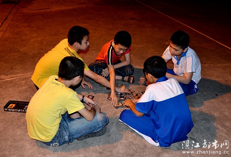 湛江都市网讯(图/文:斯佳丽)晚上在回家的路上,不经意发现,在球场旁的橙红色灯光下,几个小朋友围坐在地上正高兴地打着扑克,不时传出阵阵争吵声,令吾好似在瞬间回到童年,这天真无邪玩耍的情景,现时真难得一觅 ,于是赶紧拍下,留住那精彩画面,留住对童年回忆。