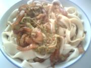这时面团也醒好了,将面擀成大片状,切成条。