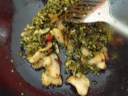 底油放五花肉片煸炒出油,下料酒翻炒均匀,倒入雪菜,翻炒盛出。