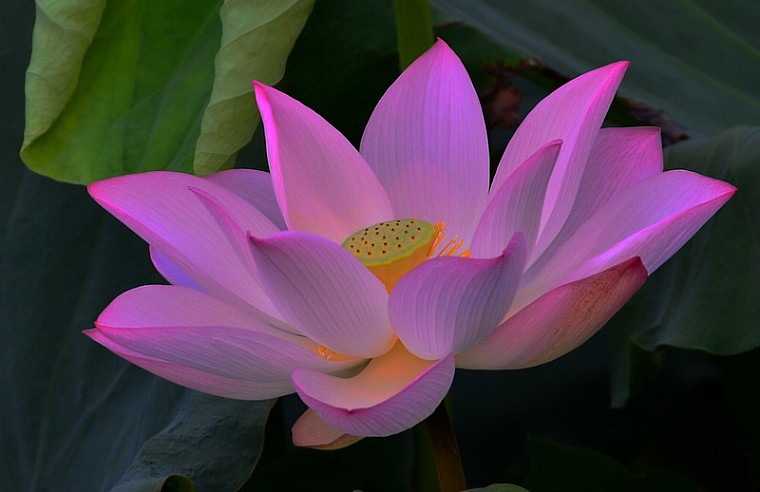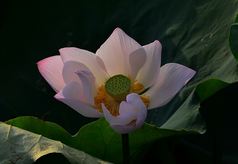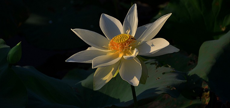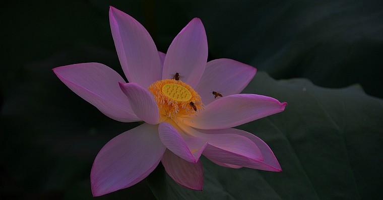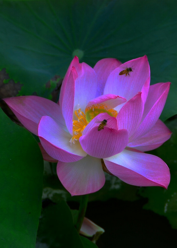 漂亮!小荷才露尖尖角的时候是有蜻蜓立上头,这会蜜蜂都露上头了,可见荷花吸引力很足啊