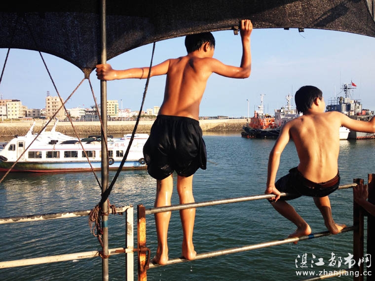 笔者前段时间去了一趟硇洲岛,用手机记录下了下面这些场面。在硇洲岛坐渡轮返程的码头,一些当地的小孩在玩跳水,连游泳还没学会的我当时感到非常惊讶,我在想:难道湛江的跳水世界冠军何冲、劳丽诗就是这样锻炼出来的吗?你们童年的夏天又是怎样度过的呢?