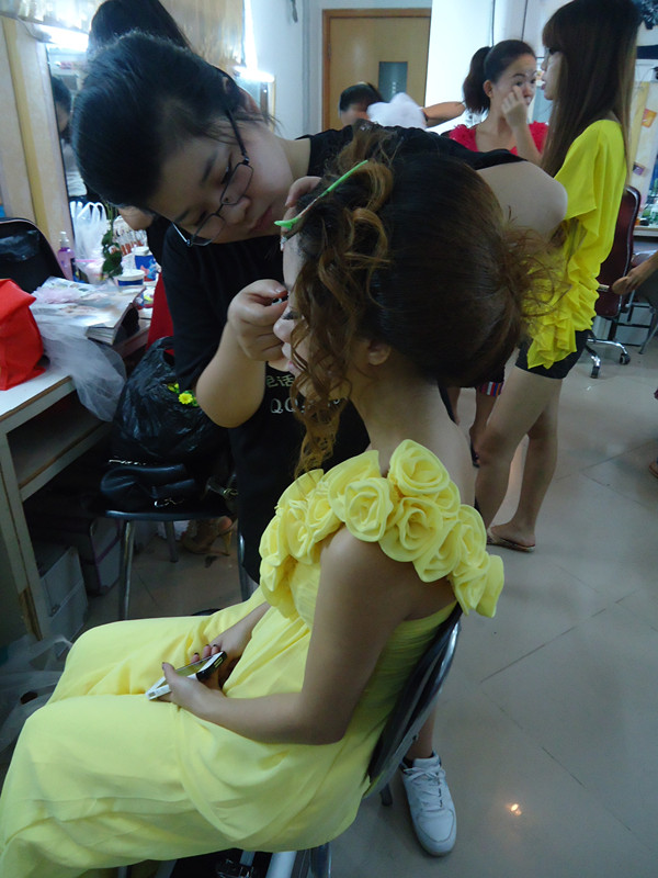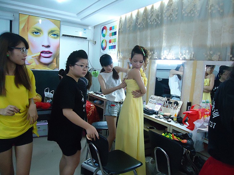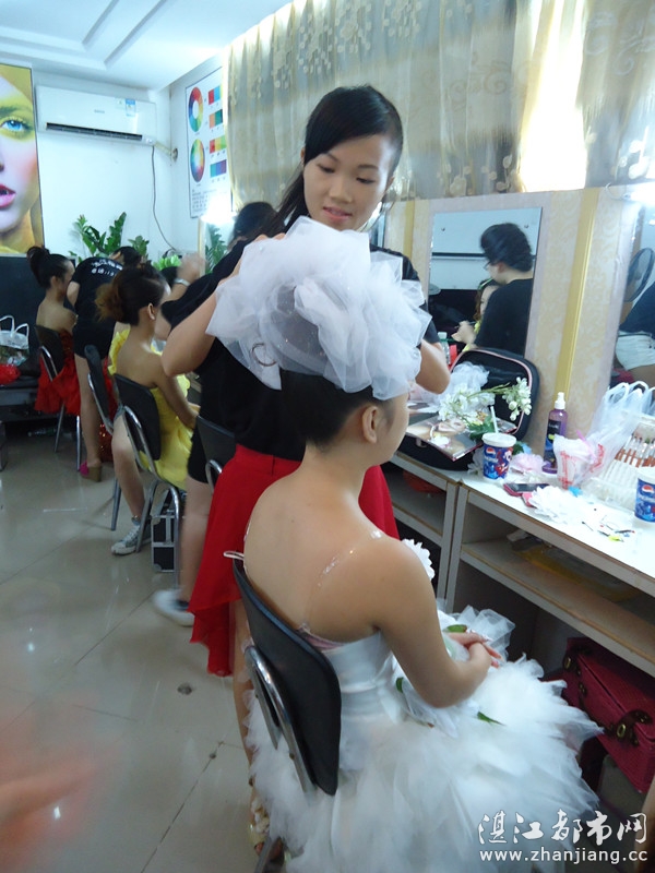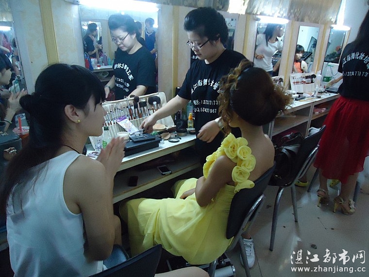 【湛江都市网讯】湛江都市网,湛江新闻网,湛江指舞化妆培训学校携手举办的“中澳大型人像摄影”在今天(7月20号)下午3:30开拍,小编12:30去到化妆室,参加拍摄的麻豆和化妆师早已进入紧张的前期准备工作。指舞化妆培训机构的陈老师和小罗老师亲自上阵指导化妆,此次拍摄麻豆(除YOYO外),服装以及化妆和造型全部由指舞化妆机构独家提供,以下是湛江都市网小编潜入最前线带回的独家爆料内容: