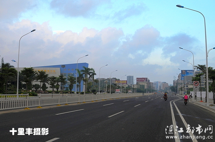 湛江都市网讯(图/文:十里丰)七月20日,我一个早起,在家阳台往天边一看,一抹晨曦光影特别美。脑海一闪念,嘿! 拍摄一组海滨大道新面貌或者筑路工人在晨光下劳作,应是正当时吧,于是收拾拍摄行当,匆匆忙忙驾车前往! 可是,晨光也没我想象那么美,这时下雨前的积雨云渐浓,海滨大道的沥青路面也早已铺设完成,并无筑路工人的劳作。唉! 大失所望! 我想,总不能空手而回吧! 于是“扫街”了一圈: 海滨大道~金沙湾海岸浴场~滨湖公园~南国热带花园~人民大道打道回府! 呵呵!