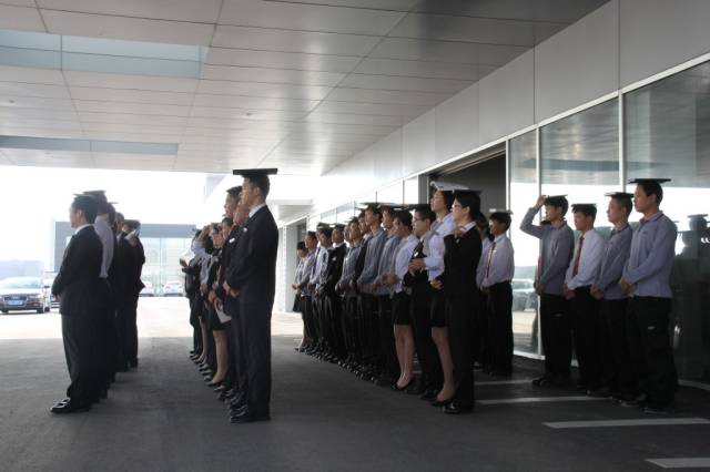开完早会,各销售顾问把自己所负责车辆擦干净,一尘不染!这不仅是对顾客的一种尊敬,也是对自己职业的一种尊敬!