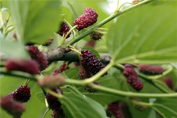 桑葚桑科落叶乔木桑树的成熟果实,桑葚又叫桑果桑枣,农人喜欢其成熟鲜果食用,味甜汁多,是人们常食的水果之一。桑葚有改善皮肤(包括头皮)血液供应,营养肌肤,是中老年人健体美颜、抗衰老的佳果与良药。常食桑椹可以明目,缓解眼睛疲劳干涩的症状。桑葚具有免疫促进作用。桑葚对脾脏有增重作用,对溶血性反应有增强作用,可防止人体动脉硬化、骨骼关节硬化,促进新陈代谢。对治疗糖尿病、贫血、高血压、高血脂、冠心病、神经衰弱等病症具有辅助功效。