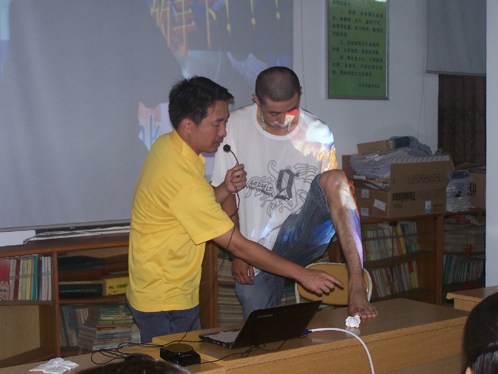 符副主任在讲解包扎知识