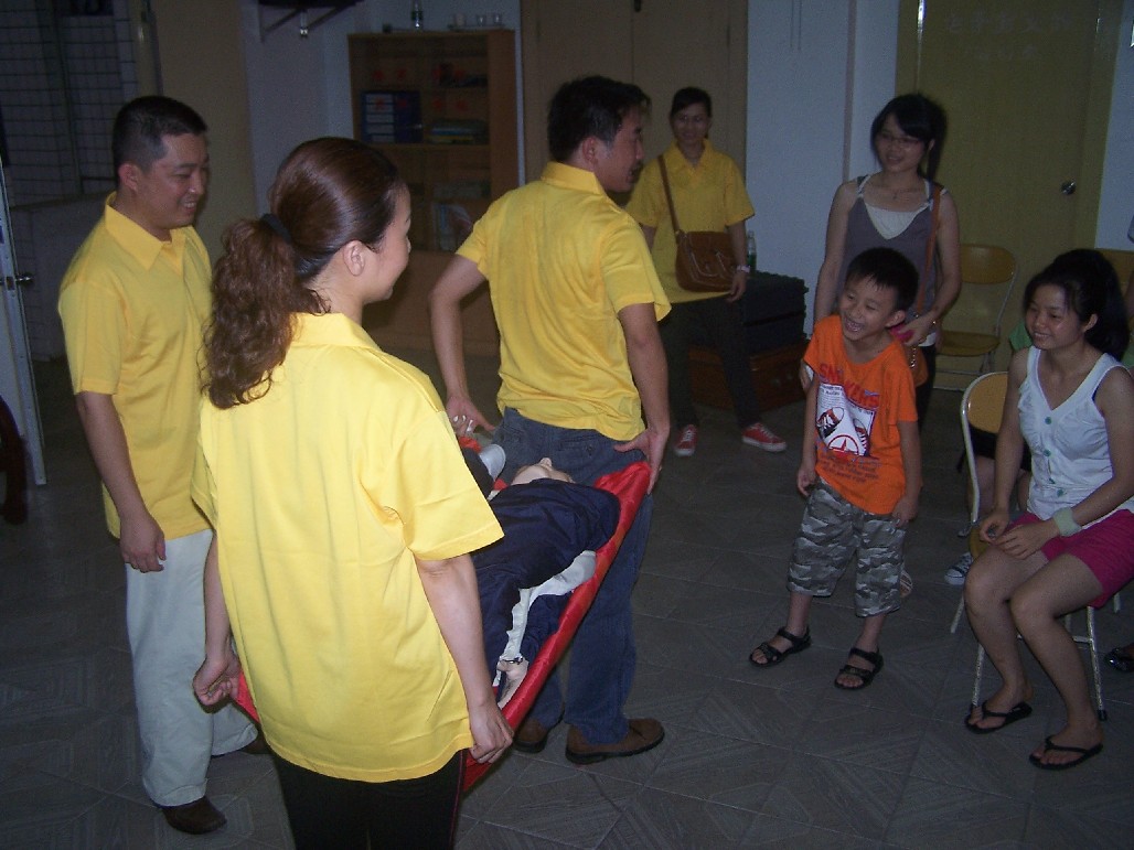 志愿者在学习使用人体担架