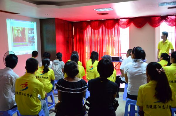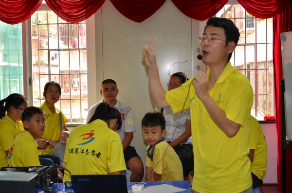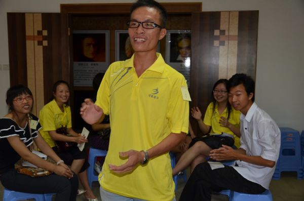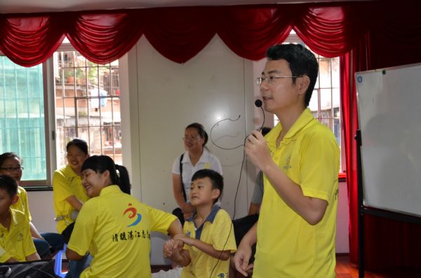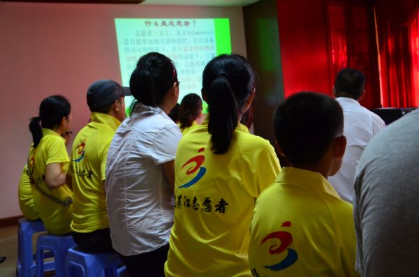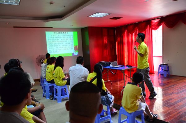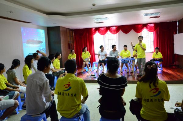 瑞腾介绍他们小组——激情梦想(志愿者都是怀着造福社会的美好梦想,激情参与每次志愿活动!)