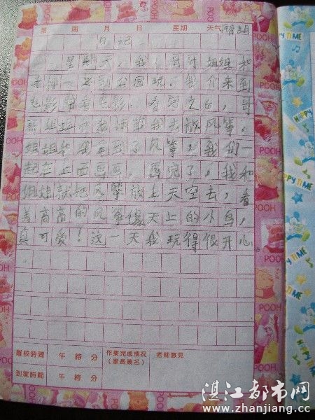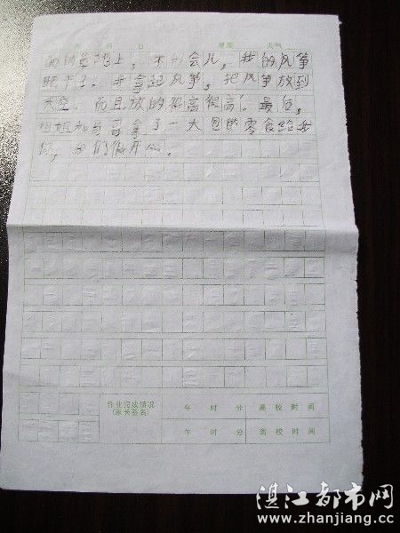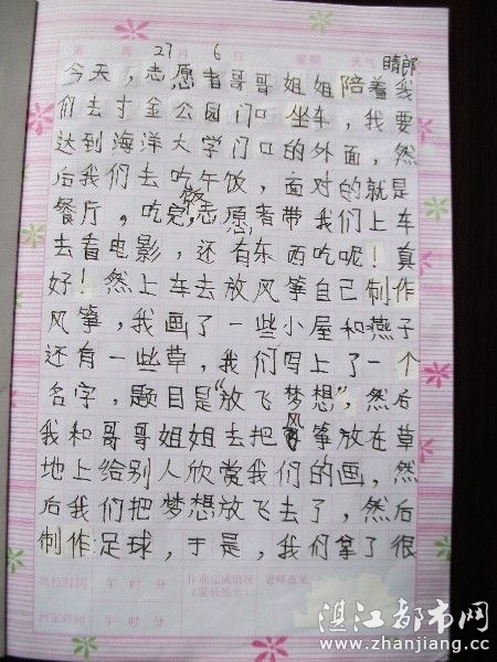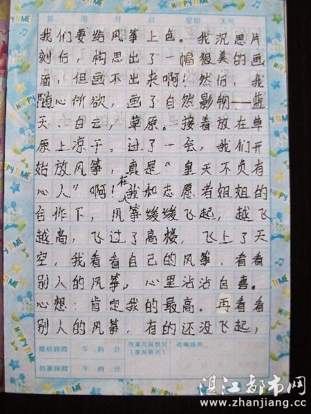 放风筝时,小娟很高兴,很放松,她把鞋子脱掉,交给我保管。画风筝时,她把蓝天,白云,彩虹画上去,还有今天的主题“爱在同一蓝天下”也写上去,还把我梅花,还有黄海,还有小娟她的名字都写上去了。