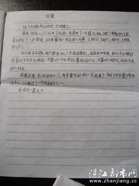 09年我和黄海参加情暖湛江的活动开始,情暖湛江和福利院小朋友搞一对一活动,我和黄海基本都参加了。包括09530游程和情暖联合办的六一儿童节放风筝及联欢晚会, 09712在福利院里举行的情暖湛江老福记关爱活动,…….等等,每次活动我和黄海都是和小娟及小参一对一。说小参小参就到。小娟远远的对小参大声说,这里这里。小参赶紧跑过来,黄海赶紧跟小参解释说:我今天要负责物资,今天不能带你了。后来,小娟差点让WOO“抢走”了。去年87日情暖湛江组织“寻找一片蔚蓝的天空”的活动,我和黄海都要上班,没能参加,让小娟很是失望。今天我和黄海及小娟我们“一家人”的幸福说什么也不能让人家抢走。