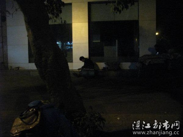 在房管局对面的建行门口,发现了第二位露宿者,