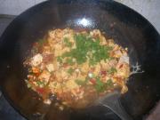 放入刚才切好的豆腐轻轻翻炒(一定要轻轻的,不然豆腐容易烂)。