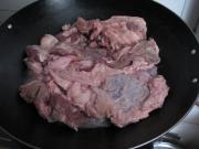 大火把锅烧热.不加油.直接把牛腩放下去翻煮.大厨说这样可以把牛腩里多余的水分煮出来.后面调味的时候就会比较容易入味道