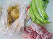 准备好尖椒和肉。(选择直挺硬实的尖椒比较好,肉也可以用五花肉)