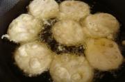 炒锅内放油,宽一些,5成热时放入挂上面糊的藕合,中火炸至两面金黄色后捞出。