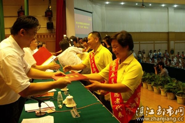 阅读(4751) 回复(9) 查看全文>> - [2012-04-28]湛江共青团纪念建团90周年暨“五.四”表彰大会[帝国海军图文]“五.四” 青年节来临之际,为弘扬五四精神,激励广大青年为湛江现代化建设拼搏奉献,共青团湛江市委于2012 年4月27日下午在海滨宾馆隆重召开纪念建团90周年暨“五.四”表彰大会,对“湛江市五四红旗基层团委标兵、湛江市十大优秀基层团委书记、湛江市十佳少先队员、‘广东省五星志愿者’湛江获得者、‘全国青年安全生产示范岗’湛江获得者”等先进集体及个人进行表彰,中共湛江市委书记、市人大主任刘小华,市委书记副书记麦教猛,市委常委邓振新,市人大副主任柯明,副市长陈云等领导出席,团市委书记,雷州市委副书记、市长吴国雄致辞,湛江市委书记、市人大主任刘小华作了讲话,并勉励广大青年高举“五四”火炬,弘扬“五四”精神,为湛江“五年崛起”贡献自己的力量。 情暖志愿者服务队“广东五星志愿者”获得者翁月嫦、周子珊、柯韶钧、梁佩英4名队员在表彰大会接受市领导颁发的荣誉证书并合影留念。