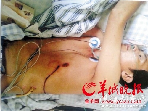 梁华明伤情严重 羊城晚报记者 罗坪 摄