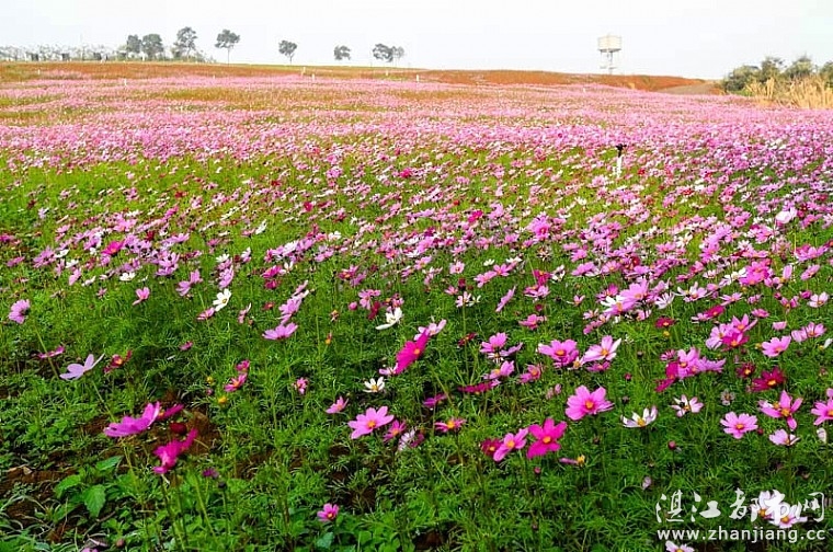 - [2015-02-02]湛江格桑花海游记湛江格桑花海游记 我们一行37人昨天去了南国花卉园,花卉园的干事林小姐非常热情带我们游览最美的格桑花海, 这南国花卉园是湛江市政府规划建设的重点项目,高标准、高起点多功能全方位进行规划,首期3000多亩,是中国南方最大的国际级花卉基地,免费开放。 我们十分惊讶这么连片的高原藏花怎么落户南国海滨城市!椐说是联合北京林业大学共同筹划,经过改良的品种。 我向南国花卉园的郑副总了解到格桑花是多种花卉其中之一种,有100多亩,目前仅是开了30%,还在陆续绽放,持续到四月底,春节前后更美。 2月1号湛江市将开通专线公交车,从赤坎寸金站直达格桑花海,票价每人2元。 格桑花,杆细瓣小,看上去弱不禁风的样子,可风愈狂,它身愈挺;雨愈打,它叶愈翠;太阳愈曝晒,它开得愈灿烂。它喜爱高原的阳光,也耐得住雪域的风寒。现在竟然迎着太平洋的亚热带海风在湛江开放! 格桑花随着季节变幻,颜色也会转变,它美丽而不娇艳,柔弱但不失挺拔,格桑在藏语里是---幸福的意思,所以也叫幸福花。 目前,南国花卉园配套设施还未完善,未见餐饮服务,是个遗憾。据说很快将配套。 我们游玩完南国花卉园,继续驱车前往螺岗岭牛鼻泉爬山、吃鸡粥。 对于我们驴友族,南国花卉园赏花与螺岗岭登山连线正好。