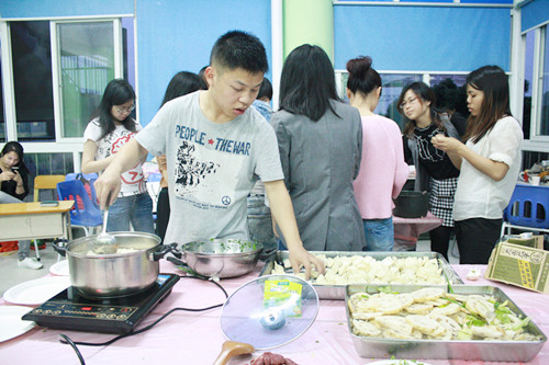 - [2014-04-17]英语58班家的温暖:美食大杂烩英语58班家的温暖:美食大杂烩 这一天的英语58班,比平时拥有更多惬意的时光。当下课铃声响起的时候,他们在老师的带领下,走出教室,享受下午的午后暖阳,紧接着,他们又奔赴另一场更加隆重的盛宴——美食大杂烩。在ibs,每个班都是一个大集体,大集体中的每个成员都在齐心协力共同营造着这家一般的温暖。 下面,让镜头带着大家,一同来看下这美食大杂烩吧。