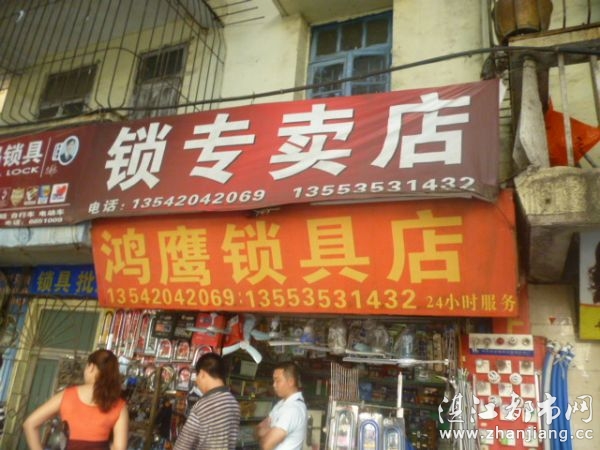 鸿鹰锁具店是一家卖锁的专卖店。里面有各种各样的所,比如抽屉锁,单车锁,摩托车。这里还可以配钥匙,师傅的技术精湛,经营丰富。为了你财产安全,来这里卖一把锁吧。